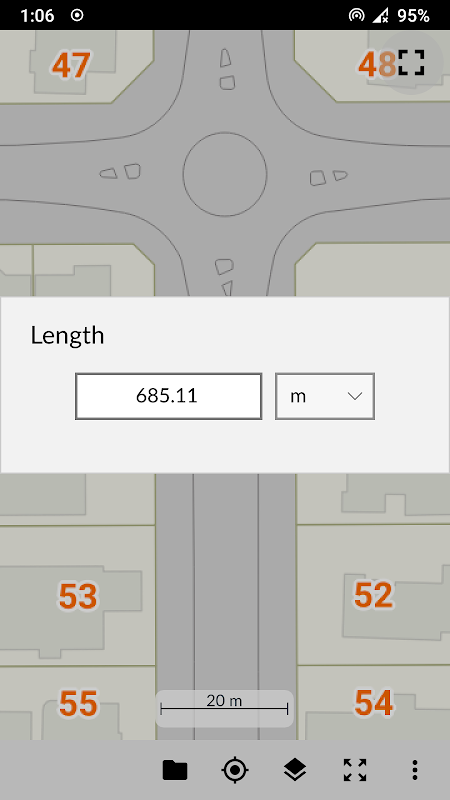 अपने QGIS प्रोजेक्ट्स को प्रदर्शित करने के लिए, ऐप की मदद पृष्ठ के अनुसार उन्हें अपने डिवाइस के स्टोरेज को Surveying_Calculator / प्रोजेक्ट फ़ोल्डर में स्थानांतरित करें। आप ज्यामितीय विशेषताओं से क्षेत्र, लंबाई और विशेषता जानकारी प्राप्त कर सकते हैं। आप पूर्ण स्क्रीन मोड में नक्शे देख सकते हैं। परतें चालू या बंद की जा सकती हैं।