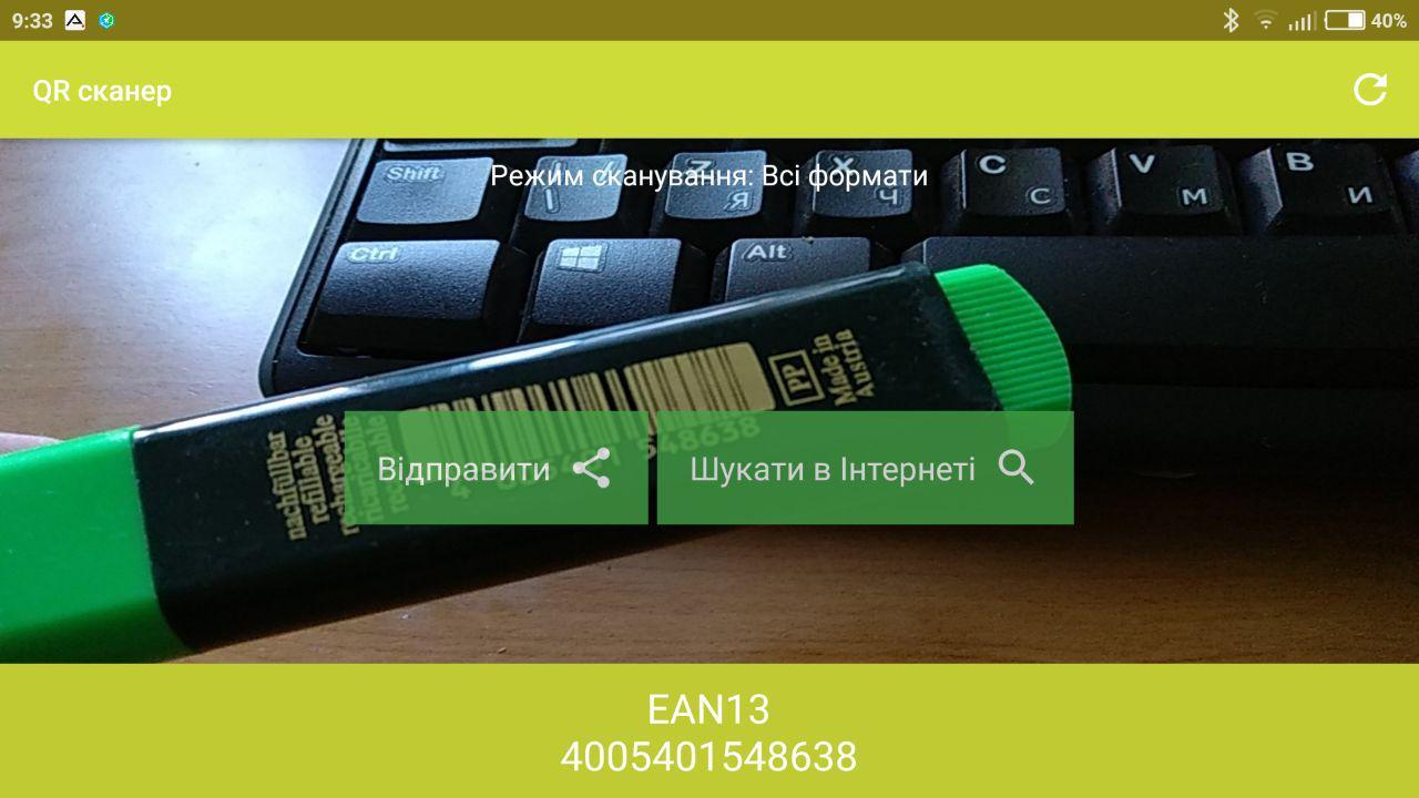 स्कैन किए गए कोड को इंटरनेट पर खोजा जा सकता है या किसी अन्य एप्लिकेशन में डाला जा सकता है - मेल द्वारा भेजा जा सकता है, नोट्स में सहेजा जा सकता है, आदि।