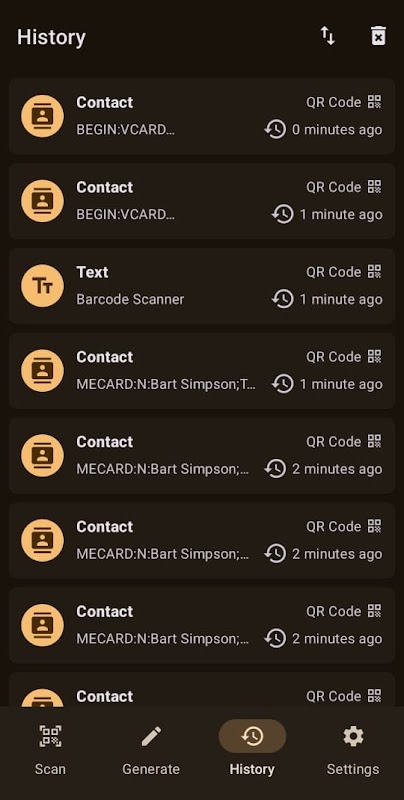 सभी कोड प्रकारों का समर्थन करता है: टेक्स्ट, URL, ISBN, उत्पाद बारकोड, संपर्क जानकारी, कैलेंडर ईवेंट, ईमेल, स्थान, वाई-फ़ाई क्रेडेंशियल, कूपन और बहुत कुछ स्कैन करें।