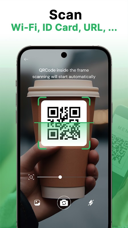 हमारे हाई-स्पीड QR स्कैनर और बारकोड स्कैनर के साथ, आप अपने कैमरा स्कैनर का उपयोग करके किसी भी QR कोड या बारकोड को तुरंत स्कैन कर सकते हैं। बस ऐप खोलें, अपने कैमरे को कोड पर इंगित करें और तुरंत परिणाम प्राप्त करें।