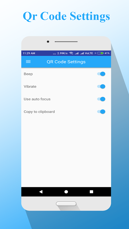 Qr code reader/ QR code generator easily fulfils your task related to Qr code & bar code. You just need to open app and focus camera on QR/Bar code. Our fast QR engine automatically detects it values. If the QR code contains a text, email, URL and phone number, app will be prompted to take the necessary action. For example, you scan the contact Qr code, add to contact button display. When you scan website link, open in web browser button display.