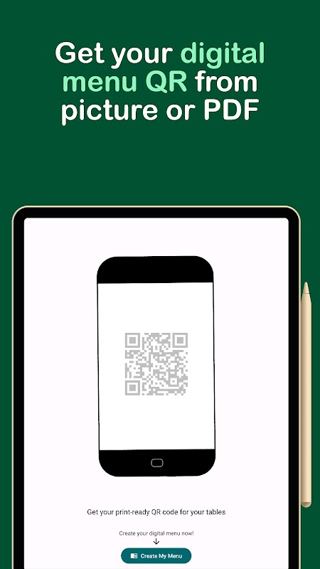 La manera rápida y fácil de crear un Menú Digital QR. Con la aplicación de Generador de Menú Digital QR, puede llevar su restaurante, cafetería, pub y bar o cualquier negocio al mundo digital con un menú QR desde un archivo PDF o imagen. Esta aplicación proporcionará la manera más fácil de administrar su menú. Digitaliza gratis la carta de tu restaurante, bar o cafetería con Digital Menu App y permite a tus clientes consultar tu carta siempre actualizada mediante un código QR o con un enlace web.
