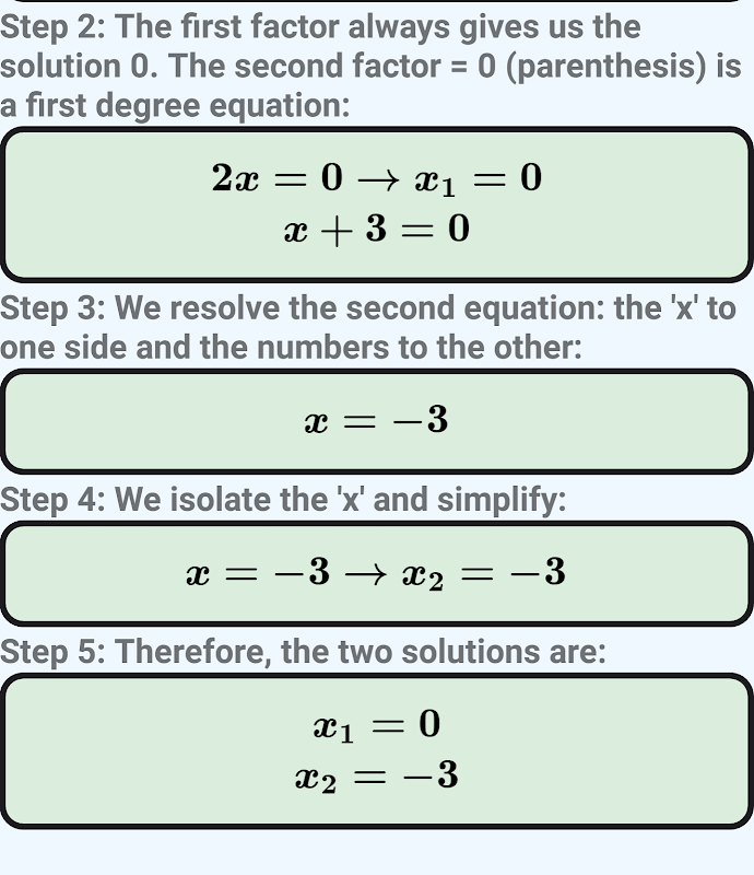 यदि c = 0, तो हम अपूर्ण द्वितीय अंश समीकरण को गुणनखंडन द्वारा हल करते हैं और प्रत्येक गुणनखंड को शून्य के बराबर कर देते हैं।
