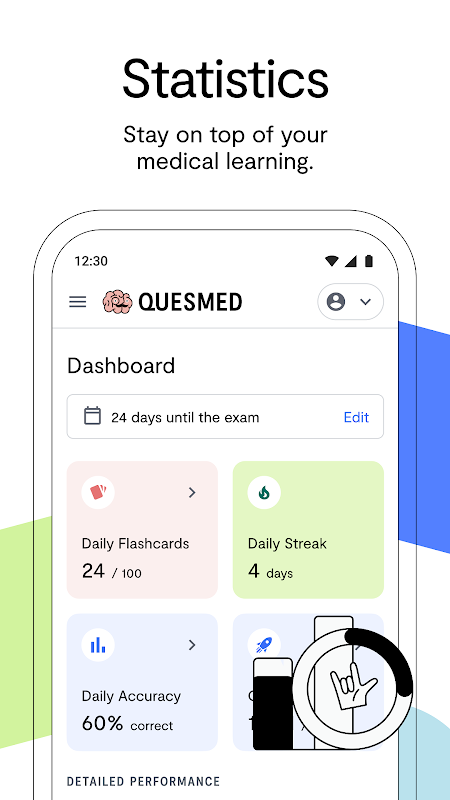 जैसे ही आप सवालों के जवाब देते हैं, Quesmed सिस्टम आपके ज्ञान में अंतराल के बारे में सीखता है और फ्लैशकार्ड की दैनिक फ़ीड का सुझाव देता है।