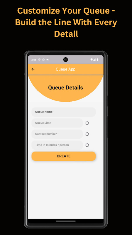 कोई भी व्यक्ति नाम, संपर्क नंबर, क्षमता सीमा और प्रति व्यक्ति अनुमानित प्रतीक्षा समय प्रदान करके एक नई कतार बना सकता है।