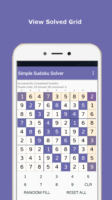 जब सभी सुरागों को सुडोकू में दर्ज किया जाता है, तो पूरा समाधान सामने आ जाता है। यदि पूर्ण समाधान प्रकट नहीं होता है, तो उपयोगकर्ता अंतिम उत्तर प्राप्त करने के लिए सुडोकू समाधान ऐप की स्क्रीन पर "रैंडम फिल" बटन पर क्लिक कर सकता है।