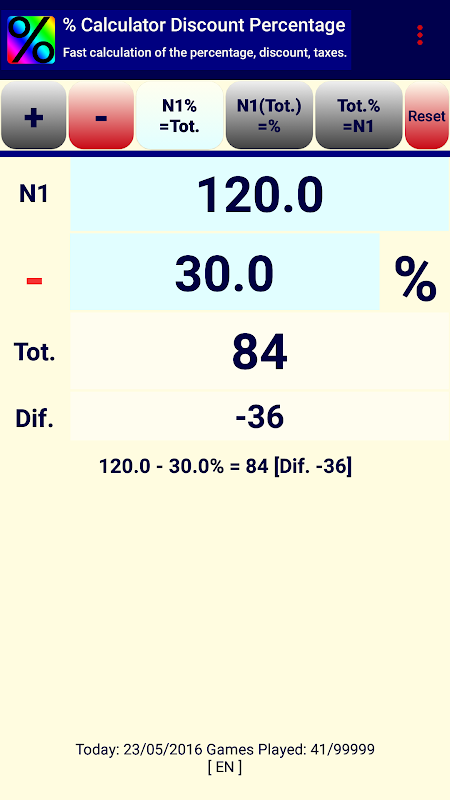 Ideal when you make purchases (for your shopping) and you have to quickly calculate the discount.