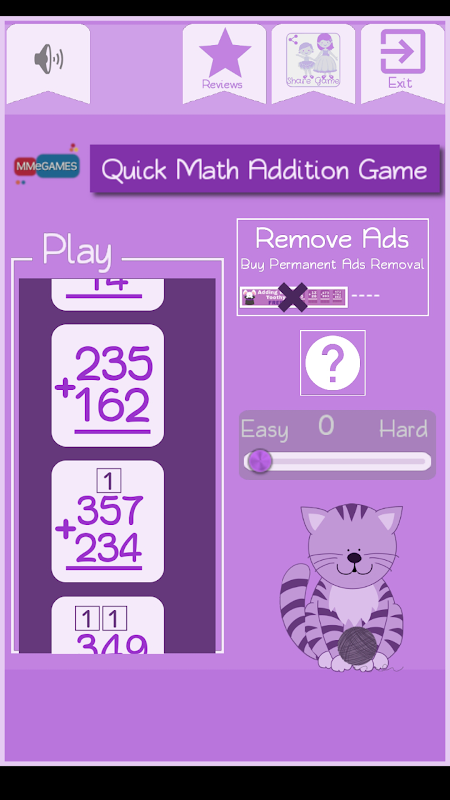 ■ एक-अंकों का जोड़: उन लोगों के लिए बनाया गया है जो जोड़ना शुरू करते हैं और अपनी मानसिक गणना कौशल को मजबूत और बेहतर बनाना चाहते हैं।