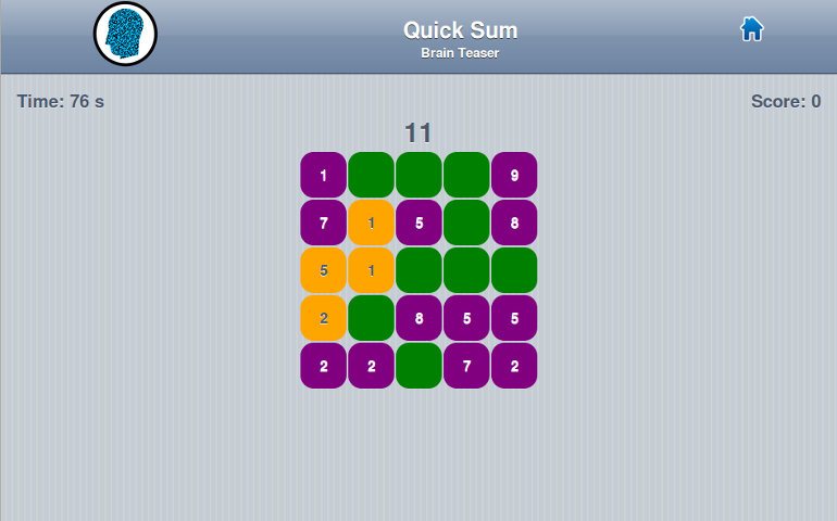 Quick Sum Brain Teaser is a simple number based brain game. The game helps you to sharpen your attention, reasoning, problem solving skills etc.