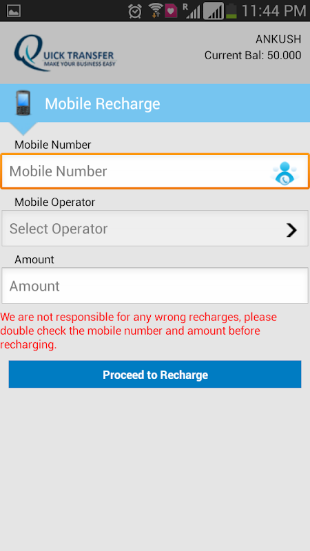 Quick Transfer -MobileRecharge
