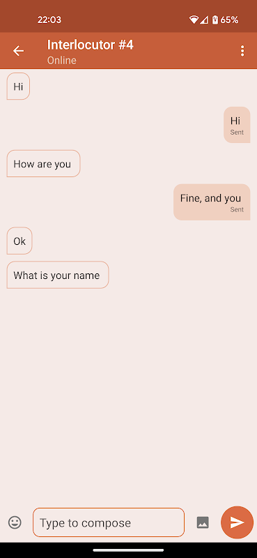बस एक वार्ताकार के लिए खोज मानदंड का चयन करें और आवेदन एक उपयुक्त वार्ताकार ढूंढेगा, जो ऑनलाइन है।