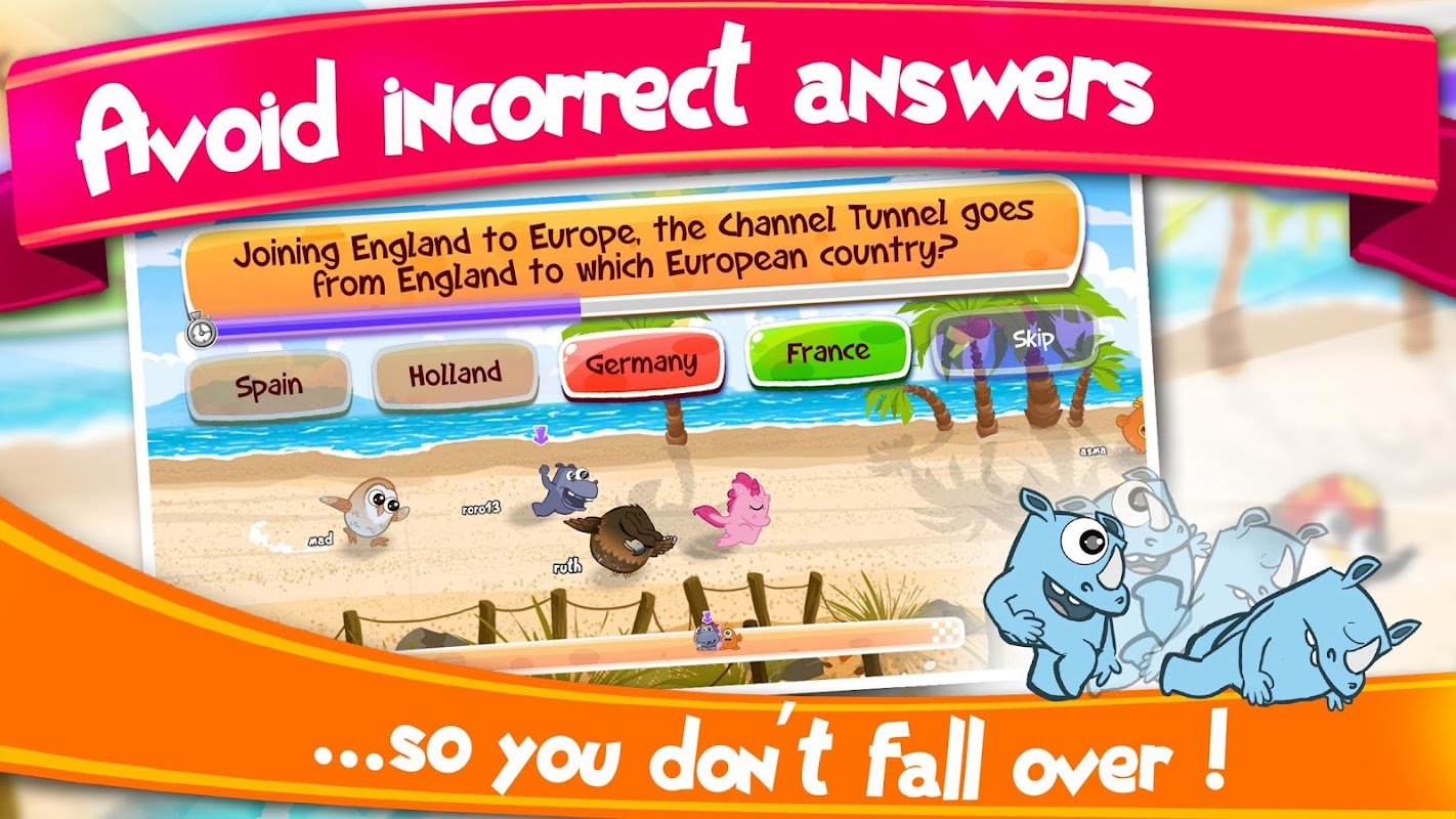 प्रश्नोत्तरी रश पहली लाइव मल्टीप्लेयर सामान्य ज्ञान रेसिंग खेल कभी, पूरी तरह से ज़्यादा पात्रों के साथ भरा है: Quizzies! तुम्हारा और 30 खिलाड़ियों रहते हैं के खिलाफ दौड़ चुनें!