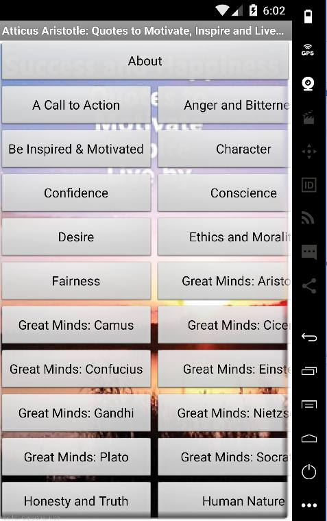 App version of the best selling book by Atticus Aristotle, Success and Happiness - Quotes to Motivate, Inspire and Live by