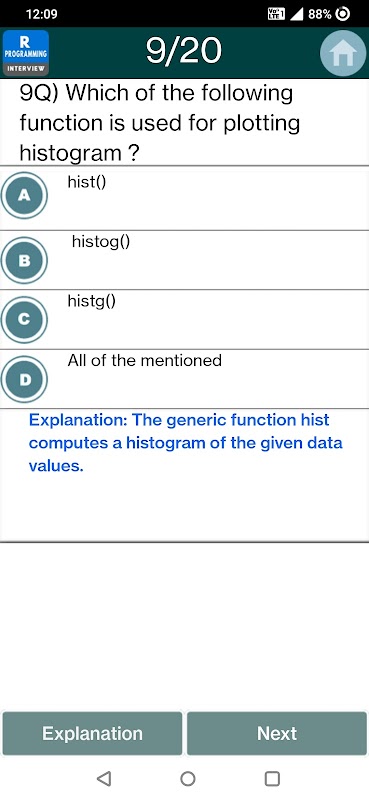 अपने अनुसंधान प्रोग्रामिंग परीक्षा के लिए आर प्रोग्रामिंग अभ्यास परीक्षा मुफ्त एप्लिकेशन परीक्षा की तैयारी। आर प्रोग्रामिंग अभ्यास प्रश्नोत्तरी आर प्रोग्रामिंग परीक्षा की अपनी सफलता के लिए अधिक तो 1200 + बहुविकल्पीय प्रश्न होने ऐप्लिकेशन में। आर प्रोग्रामिंग अभ्यास प्रश्नोत्तरी फ्री ऐप्लिकेशन आपको आपके आर प्रोग्रामिंग नौकरी साक्षात्कार अभ्यास करने के लिए मदद करता है।