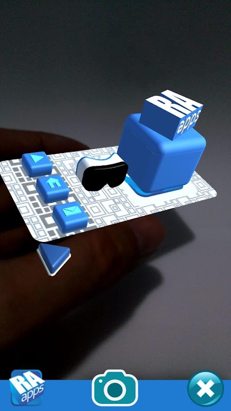 Cartão de visitas da Realidade Aumentada Apps com animação interativa em RA mostrando as possibilidades dos vários serviços desenvolvidos pela RA Apps.