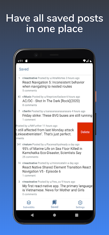 रैबिट ऐप आईओएस और एंड्रॉइड के लिए एक लाइट हैंड रेडिट क्लाइंट है।
