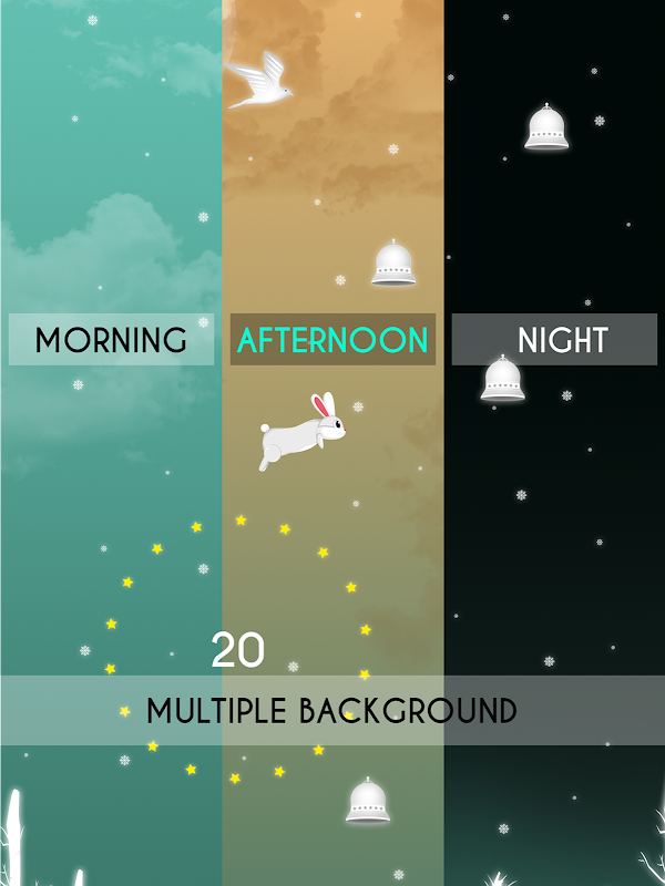 Bells Jump is an classic jumping up game. A cute little bunny jumping on bells to climb up along with the touched background music, players slowly immersed in the silence of snow playful world.