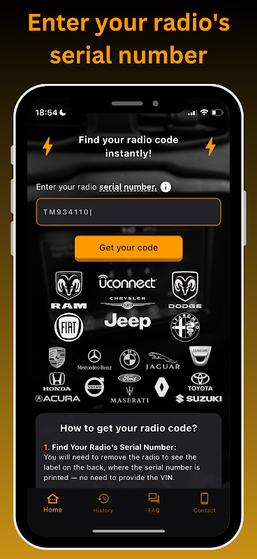 भुगतान के बाद यह जांचने के लिए कि आपका कोड तुरंत स्क्रीन पर उपलब्ध है या नहीं, बस अपने रेडियो का सीरियल नंबर (एस/एन) हमारे ऐप में दर्ज करें। 📲💸