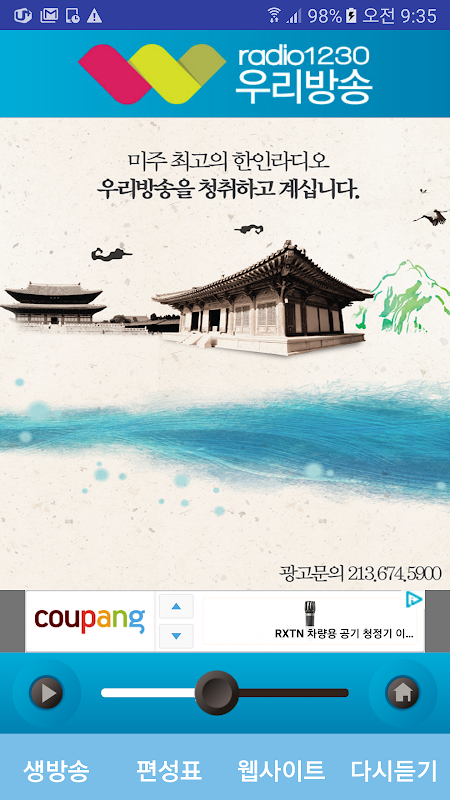 전세계 어디서나 라디오 K 1230 우리방송에서 제공하는 양질의 라이브 라디오를 무료로 청취할 수 있습니다.