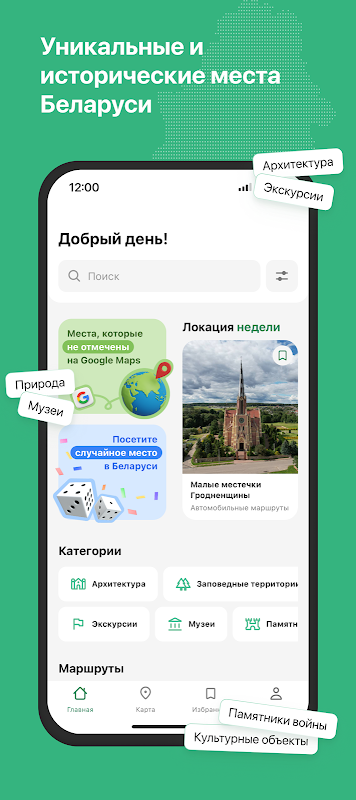 Radzima 500+ राष्ट्रीय उद्यानों, प्रकृति भंडार, ऐतिहासिक स्थलों और बेलारूस के स्थलों, साइकिल चलाने और लंबी पैदल यात्रा ट्रेल्स और भ्रमण के लिए एक यात्रा गाइड ऐप है।