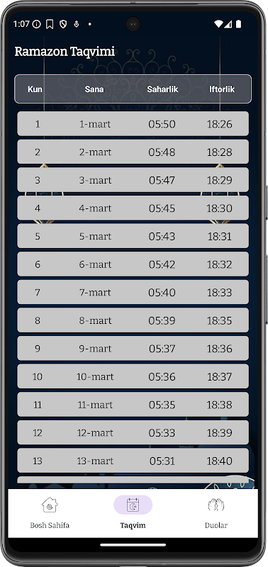 रमज़ोन तकवीमी और डुओलर! सहर्लिक और इफ्तोर्लिक वक्तलारिनि कुज़ेटिंग।