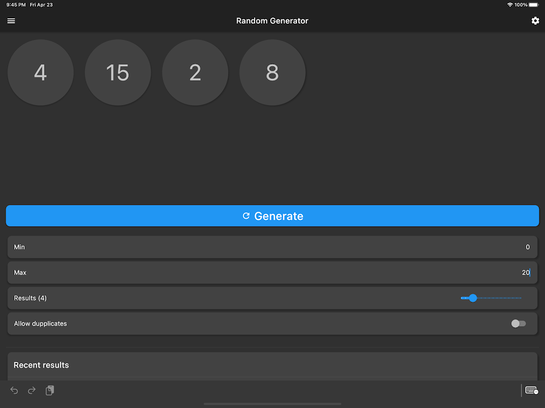 • रैंडम नंबर जनरेटर: तुरंत एक या कई नंबर जनरेट करें। आपके पास न्यूनतम और अधिकतम सीमाओं पर पूरा नियंत्रण है। इसमें स्मूथ एनिमेशन और पिछला इतिहास देखने की सुविधा है।