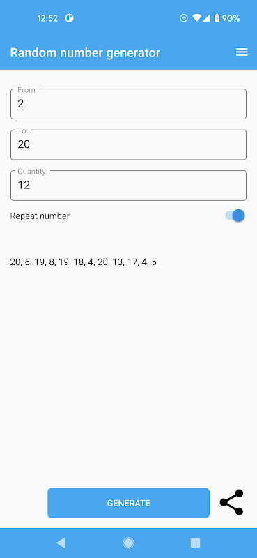 के लिए यादृच्छिक संख्या उत्पन्न सरल अनुप्रयोग