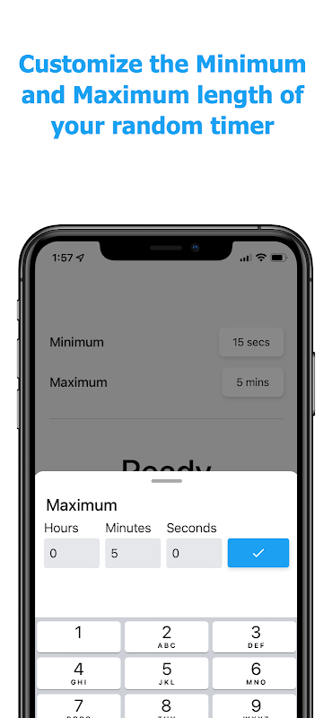 रैंडम टाइमर जेनरेटर एक रैंडम काउंटडाउन टाइमर है जो आपको न्यूनतम और अधिकतम समय इनपुट करने की अनुमति देता है, और फिर यह उस सीमा के भीतर कहीं एक रैंडम टाइमर शुरू कर देगा (यह तब काम करता है जब स्क्रीन लॉक हो या अन्य ऐप्स सक्रिय हों)