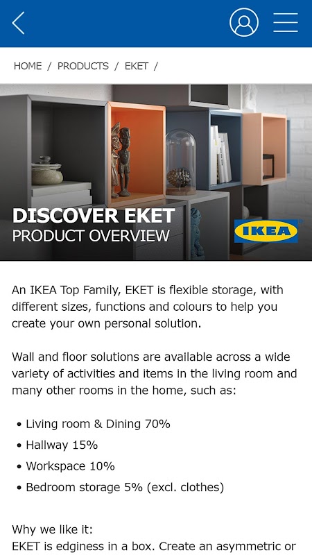 - Galleries: view high quality images produced by IKEA of Sweden featuring products from the Discover section.