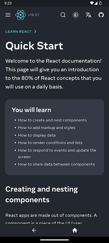 आधिकारिक React.js दस्तावेज़ तक पहुँचने के लिए डिज़ाइन किया गया अनौपचारिक ऐप।
