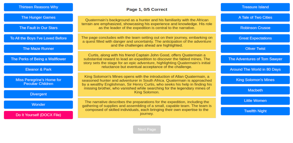 • एक बार जब पैराग्राफ सही ढंग से व्यवस्थित हो जाते हैं, तो "अगला पृष्ठ" बटन सक्रिय हो जाता है, जिससे खिलाड़ी को आगे बढ़ने की अनुमति मिलती है।