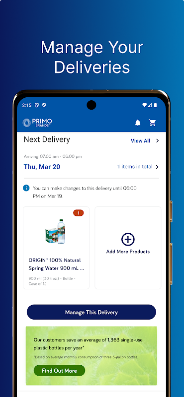 • खाली बोतल पिकअप शेड्यूल करें