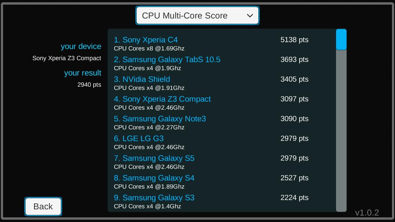 All results are saved in the cloud so you can easily compare your device performance with any other device in the world! Just try it for yourself! With several scoreboards at hand you can compare freely any results.