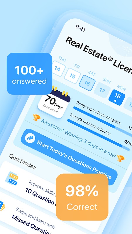 रियल एस्टेट परीक्षा तैयारी 2025 एक परीक्षा तैयारी एप्लिकेशन है जो आपको अपने पहले प्रयास में उच्च स्कोर के साथ रियल एस्टेट एजेंट लाइसेंसिंग परीक्षा उत्तीर्ण करने में मदद करेगी।