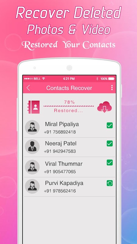 Contact Recovery: - This Photo & Video Restore or Photo Video Recovery or Contact Recovery App helps you Restore Contacts or Recover Deleted Contacts for Free and WITHOUT ROOT. Contact Recovery or Restore Contacts have never been this ease with the all new Contacts Recovery App.