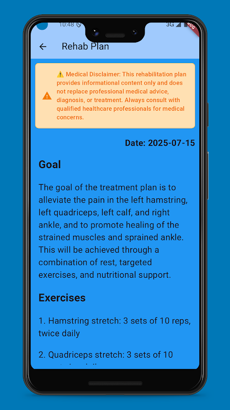 विशेष रूप से एथलीटों और सक्रिय व्यक्तियों के लिए डिज़ाइन की गई एआई-संचालित निदान और व्यक्तिगत पुनर्वास योजनाओं के साथ अपनी चोट से उबरने की यात्रा को बदलें।