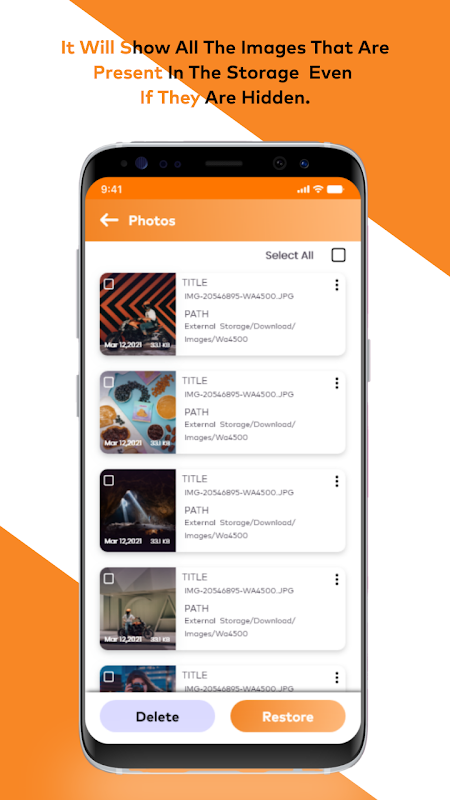 डेटा रिकवरी - फोटो रिकवरी को आपके फोन डिवाइस से पुनर्प्राप्त करने और पुनर्स्थापित करने के लिए स्टोरेज अनुमतियों की आवश्यकता होती है, इसलिए एक्सेस अनुमति की अनुमति दें अन्यथा ऐप काम नहीं करेगा।