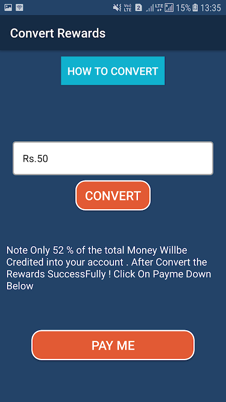 2. Once the users will convert the money only the 52 % of the total money will be credited to their account ,Remaining out of 48% google will charge 30% and 18 % by us.