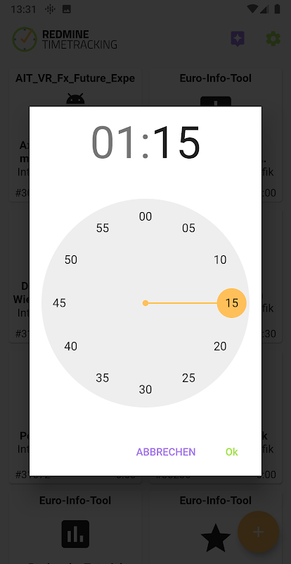 REDMINE TIMETRACKING ऐप आपको कार्यों पर खर्च किए गए समय को ट्रैक करने की अनुमति देता है