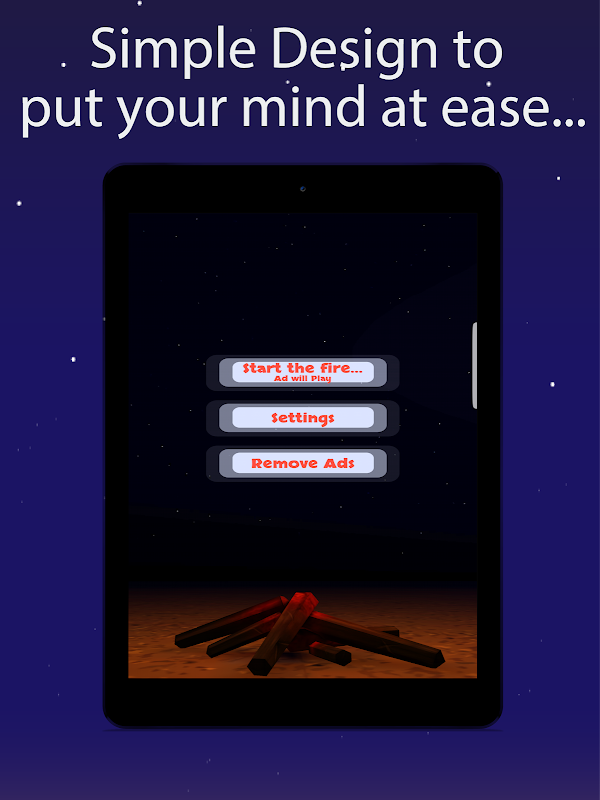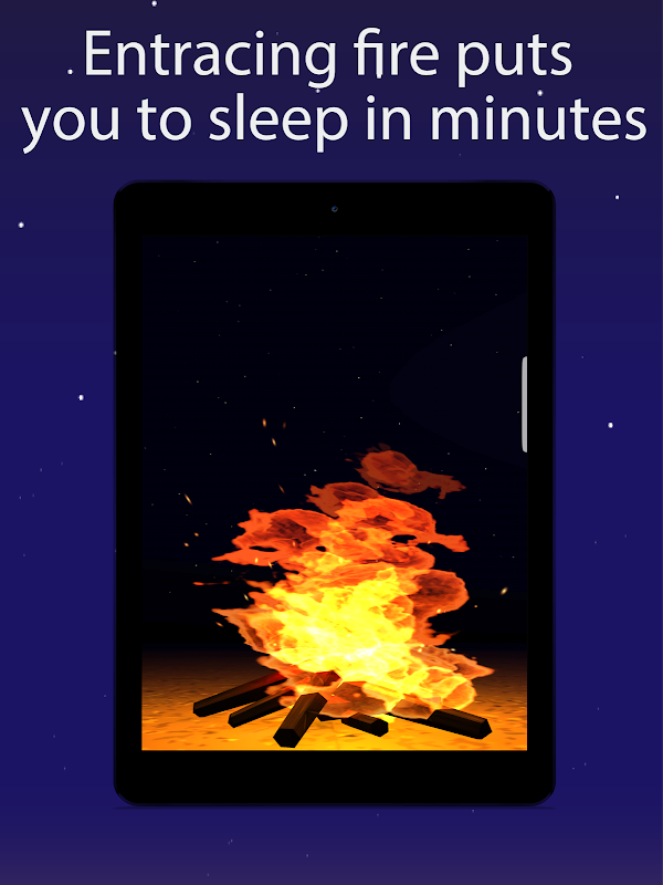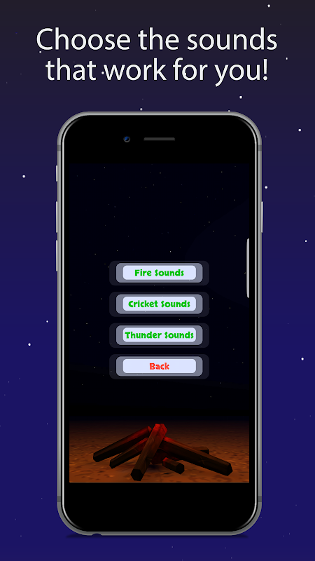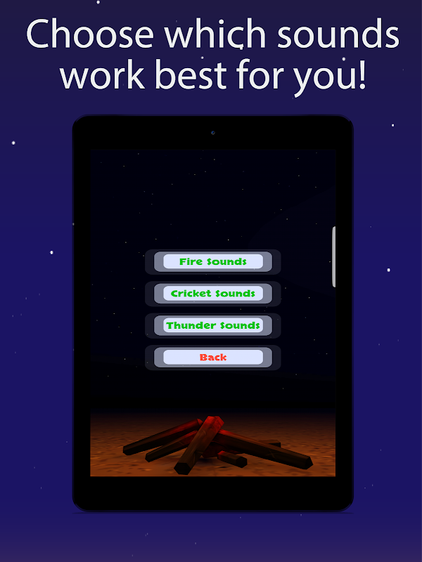 The app includes a burning campfire visual accompanied with your choice of outdoor camping sounds