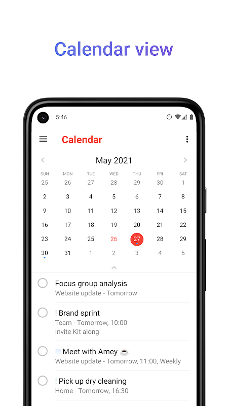 📆 कैलेंडर दृश्य - एक नज़र में अपना दैनिक कार्यक्रम देखें।