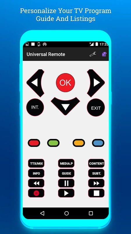 Universal Remote Control for TV turns your phone or tablet into a Universal remote for almost all tvs. Your remote control for all channels, works as a Universal Remote. The operation is the same as the real TV remote.