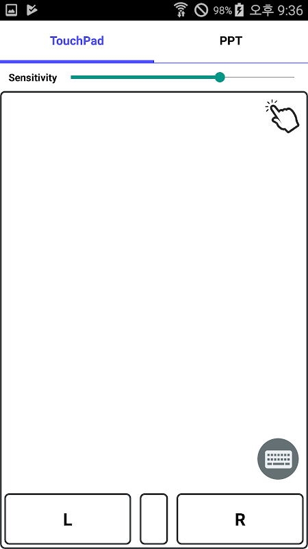 Android फोन पर पीसी के माउस जिस पर सर्वर कार्यक्रम चल रहा है (टचपैड) समारोह आवेदन उपलब्ध है।
