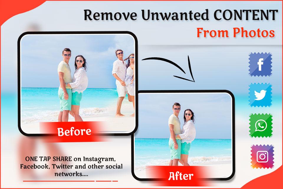Remove Object: Erase Unwanted Content from Photo Change your Smartphone Photos and make them look like they were shot on a HD DSLR Camera. Use Remove Objects app to remove all unwanted items from photos.