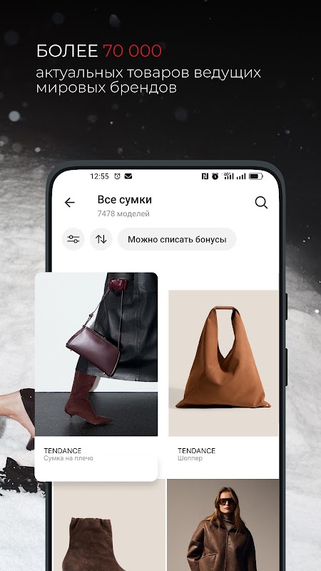 फ़ोटो सर्च से जूते, कपड़े या एक्सेसरीज़ का "परफेक्ट" या उससे मिलता-जुलता मॉडल ढूंढना आसान हो जाता है। वैकल्पिक रूप से, रंग, स्टाइल, साइज़, मौसम, कीमत और अन्य मापदंडों के आधार पर सुविधाजनक फ़िल्टर सिस्टम का इस्तेमाल करें। आप स्टोर में उत्पाद की उपलब्धता भी देख सकते हैं और उसे 24 घंटे के लिए आरक्षित कर सकते हैं।