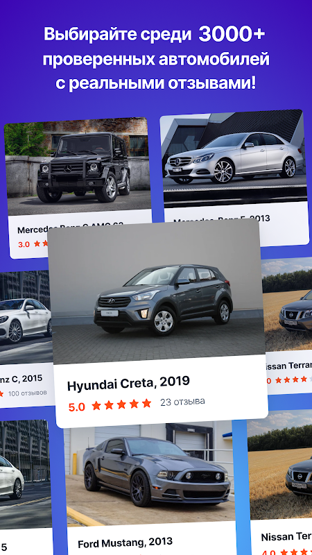 फ़ोन नंबर द्वारा रजिस्टर करें, दस्तावेज़ अपलोड करें और सही कार किराए पर लें। आमतौर पर, कार मालिक 25 मिनट के भीतर अनुरोधों का जवाब देते हैं।