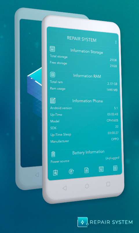 Repair System app scans for bugs and damage files, then it will boost your RAM to optimize the performance of your phone, which includes accelerating web browsing speed, improving gaming experience and making your battery last longer.