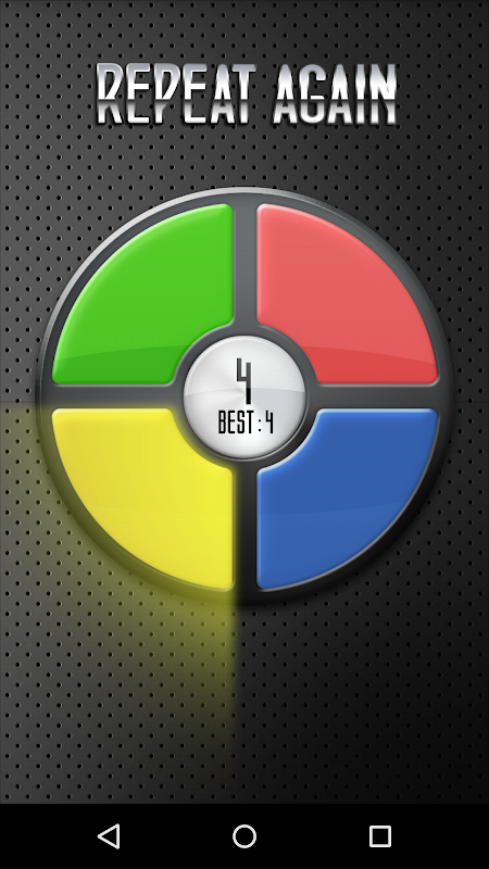 Repeat again is a classic simple and addictive memory game from the 80's. Just follow and repeat the sequence of lights and sounds for as long as you can.