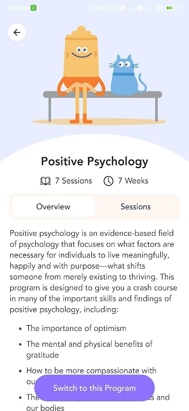 विशिष्ट परिस्थितियों के लिए साक्ष्य-आधारित कार्यक्रमों को फिर से आकार दें, चिंता, अवसाद, तनाव को कम करें, नकारात्मक विचारों को दूर करें, और समग्र स्वास्थ्य और भावनात्मक कल्याण में सुधार करने के लिए प्रभावी उपकरण और कार्यक्रम प्रदान करके अधिक लचीलापन का निर्माण करें।