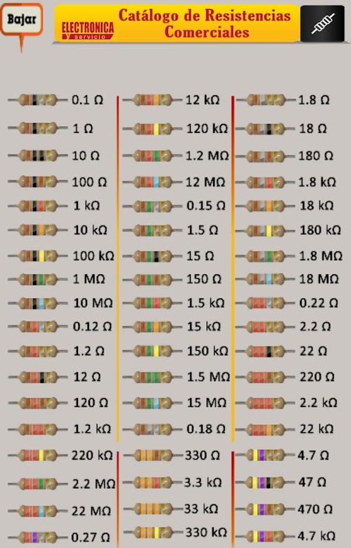 Además incluye un catálogo de resistencias comerciales.